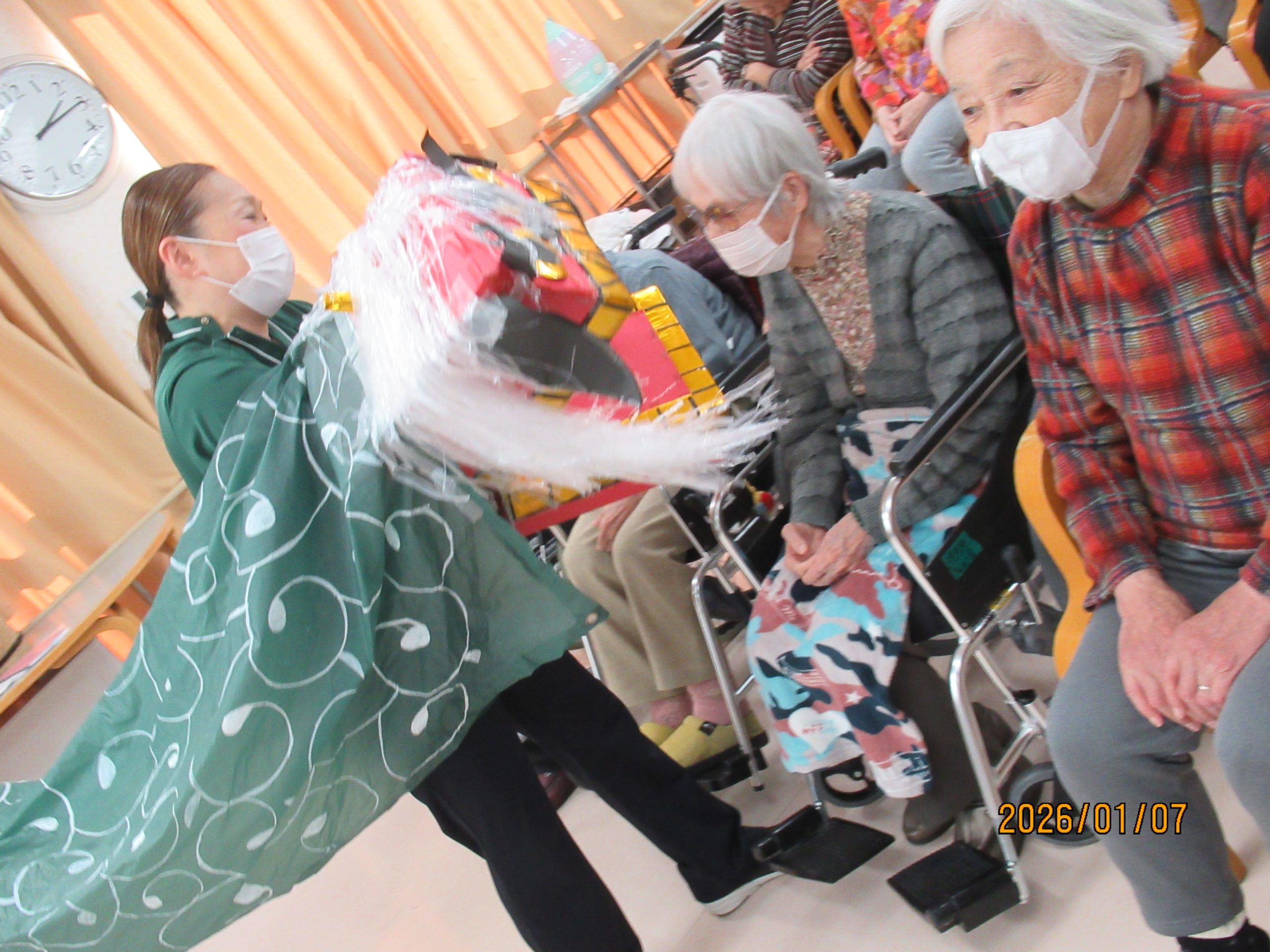 新年あけましておめでとうございます!今年も皆さまが元気に過ごされることお祈りし、厄除け「獅子舞」、無病息災「七草がゆ」を新年会でご用意しました。