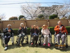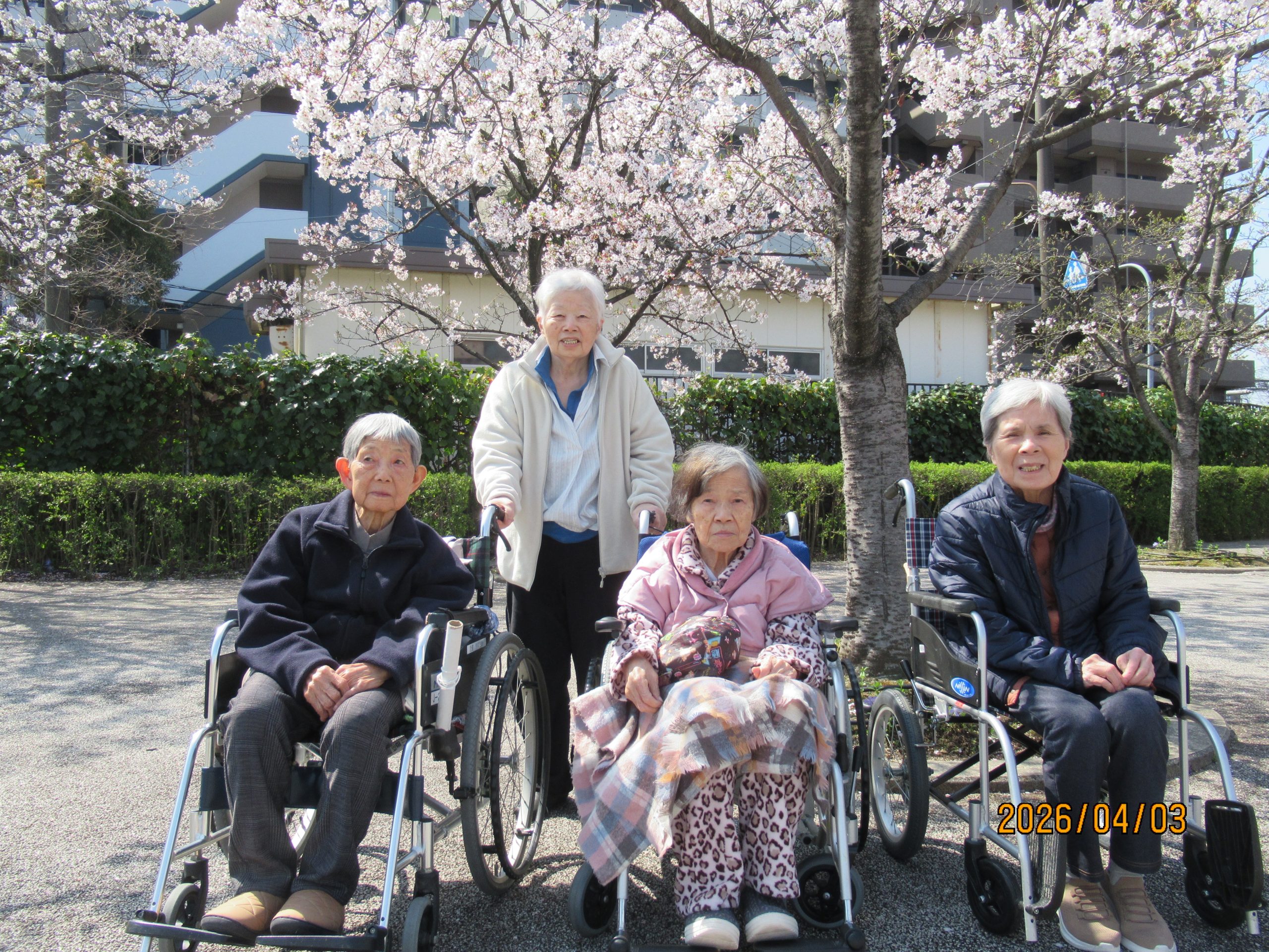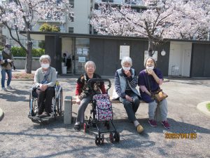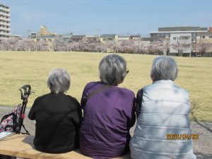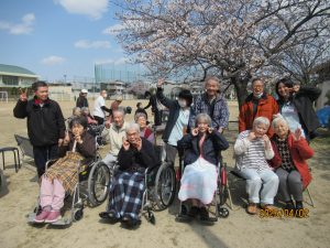 今年の花見は色々なところにでかけました!やすらぎ母体病院の敷地内以外に、高川小学校の学童さんや地域の方と一緒に🌸、庄内パナソニックさくら広場🌸、豊南東公園🌸、どこもすばらしい花盛りできもち良かったです。体調不良者除き、99%の方が花見に出かけることができました。